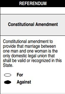 Update: The amendment passed in the May 8 primary election. The long term consequences of the wording which removes recognition of domestic civil unions as well as confirming the state’s law against gay marriage will be worked out through the courts.